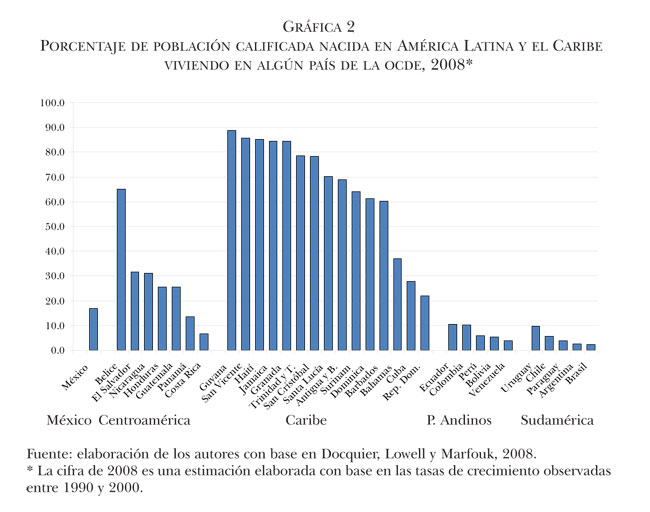 Migración calificada con origen en América Latina y el Caribe hacia los países de la OCDE: estimaciones para 2008