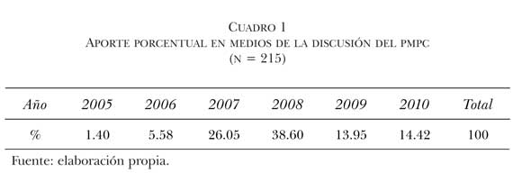 a) Relevancia en el tiempo, temas y subtemas: se observa en el cuadro 1 que la discusión en torno al PMPC fue relevante en el periodo 2007-2008, que coincide con el tiempo de los preparativos para la declaratoria presidencial de licitación del puerto, en agosto de 2008. De ahí surgieron siete grandes temas, así como un número de subtemas, que se muestran en el cuadro 2.