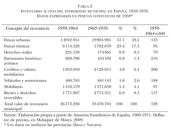 ¿Pero qué hay de aquellos derechos de propiedad reducidos a acceso y sustracción (que suponían por tanto una carga o gravamen sobre propiedades privadas), que habían sido definidos como usos o prácticas nocivas en el citado texto de José de Echegaray? Lo cierto es que el desarrollo histórico y las leyes favorables a la redención de servidumbres no los hicieron desaparecer. La tabla 2, que recoge los inventarios del patrimonio municipal en las provincias españolas de régimen fiscal común, permite comprobar su pervivencia durante la década de los años sesenta, agrupados bajo el rótulo "derechos reales". Su valor de tasación venía a representar una proporción muy pequeña, y menguante, del patrimonio municipal, pero lo que resulta significativo es precisamente su persistencia, a pesar de que desde mediados del siglo XIX la opinión pública y las leyes se habían pronunciado rotundamente a favor de su extinción. ¿Cómo explicar semejante obstinación y resistencia a la racionalización desde arriba? Quizá sea útil recordar aquí que, como señalaron Arun Agrawal y Gautam Yadama (1997), el impacto sobre la condición de los recursos de aquellas fuerzas de alcance general, como el crecimiento demográfico, la presión del mercado, el cambio tecnológico y las políticas de Estado se encuentra mediado por las instituciones locales ligadas con el manejo de recursos, por las normas y reglas formales o informales que estructuran la acción colectiva a escala local. En suma, si las cargas o servidumbres colectivas sobre tierras de propiedad particular no desaparecieron por completo, fue probablemente porque continuaban jugando un papel en el entramado institucional de las comunidades locales.