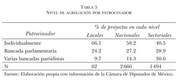 La información anterior permite establecer que en el modelo federal mexicano la representación, a partir de los proyectos de ley que promueven los diputados, tiende a ser mayoritariamente nacional, dejando poco margen para la política de corte parroquial.21 Dado el reducido localismo, es evidente que para los diputados resulta poco rentable patrocinar legislación parroquial, y cuando lo hacen procuran introducir temas económicos que bien podrían beneficiar a su distrito de procedencia. Esto demuestra, hasta ahora, que la estrategia que motiva el tipo de representación de los legisladores no está en sus respectivas bases de apoyo electoral, sino que parece definirse por otros factores y estar vinculada con otra de sus funciones parlamentarias.
